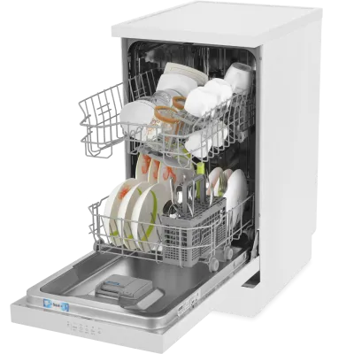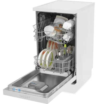 Отдельностоящая посудомоечная машина Hotpoint HFS 1C57 оснащена функцией защиты от протечек Aquastop, легким в управлении тайм-дисплеем и дополнительной корзиной для столовых приборов. Благодаря продуманному дизайну и параметрам она легко впишется в любое кухонное пространство. Пять программ обеспечат эффективное мытье посуды даже с сильными загрязнениями. Посудомойка Hotpoint HFS 1C57 имеет опцию “Экстра сушка”, при которой посуда обрабатывается горячим воздухом после завершения мойки. Это обеспечивает идеальный результат сушки, сокращая время работы техники и гарантируя отсутствие водяных разводов на стекле.